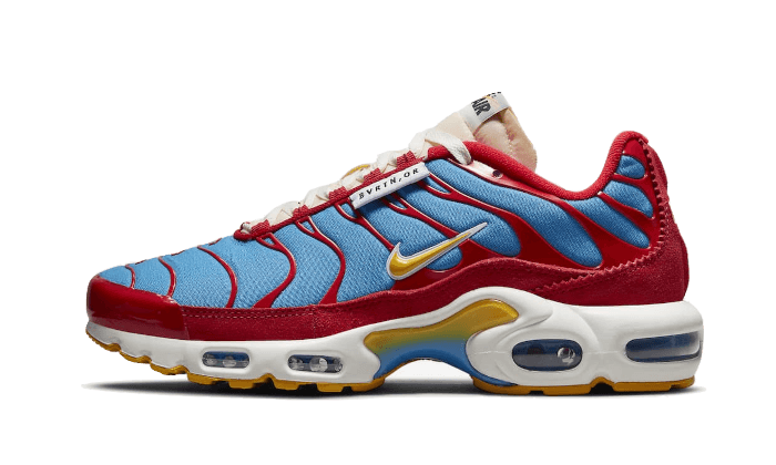 Il Nike Air Max Plus SE Running Club University Blue presenta una tomaia blu chiaro con elementi in TPU e rinforzi in pelle scamosciata rossa. Le schede multiple sul design, con le parole “Air Max Running Club” e “Beaverton, Oregon”o la scheda Nike Air portare l’atmosfera retr .