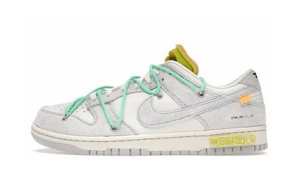 Sneakers in pelle bianca/grigio/giallo/verde x Off-White Dunk Low “14/50” di NIKE con dettaglio logo Swoosh, logo ricamato sul retro, stampa slogan, pannello a contrasto, punta tonda, dettaglio in corda, soletta con logo e suola di gomma. Questi modelli sono forniti da un mercato di scarpe da ginnastica premium. Stoccando solo le calzature pi ricercate, acquistano e curano alcune delle sneakers pi difficili da trovare da tutto il mondo..