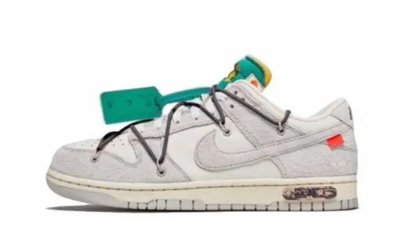 La Off-White x Nike Dunk Low “Lot 20” una delle cinquanta diverse colorazioni della scarpa da basket e lifestyle retr disegnata da Virgil Abloh nell’agosto 2021. L’attesissima collaborazione “Lot 50” tra Off-White e Nike segue la collaborazione del duo Collezione The 10 del 2017, una delle collaborazioni di sneaker pi influenti della storia. Qui, su “Lot 20”, la tela Sail sulla base della tomaia contrastata dalla pelle scamosciata Neutral Grey sulle sovrapposizioni e dallo Swoosh. Il marchio “Nike” nero appare sul tallone. Il testo Helvetica della firma di Off-White si trova sul lato mediale. Un sistema di allacciatura secondario simile a un cordino elastico stratificato sulla tomaia in nero. Il look coerente con lo stile della prima collaborazione Nike Dunk di Off-White del 2019. Un tradizionale sistema di allacciatura sulla tomaia mantiene il design originale di Dunk. A completare il look c’ un inserto “Lot 20 of 50” marmorizzato rosa e nero sull’intersuola
